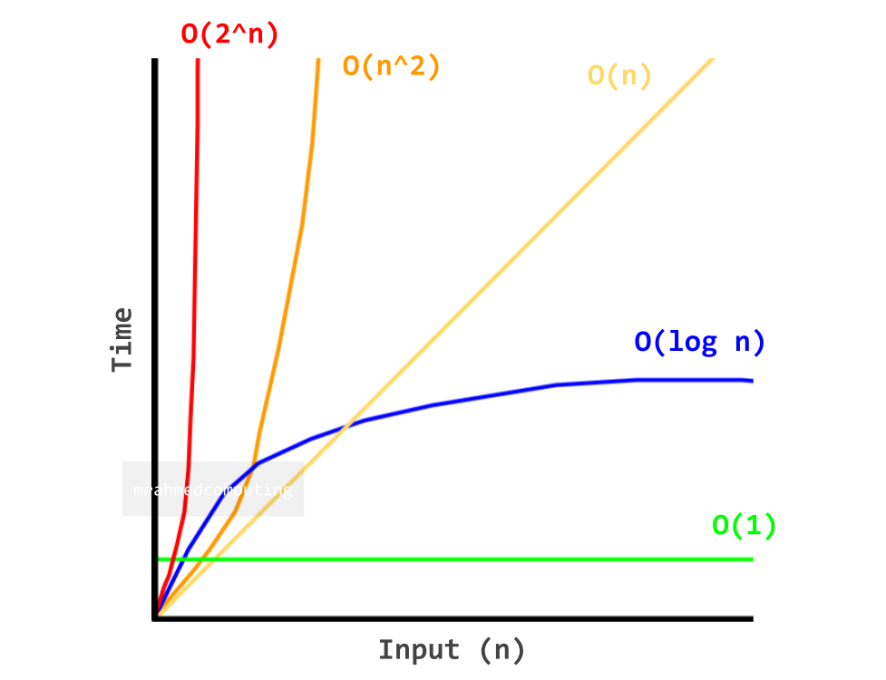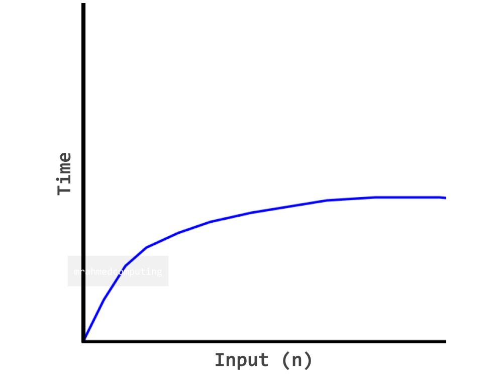 - O(log n): This means that the algorithm runs in logarithmic time. The time it takes to execute the algorithm grows logarithmically with the input size. Data set is halved.