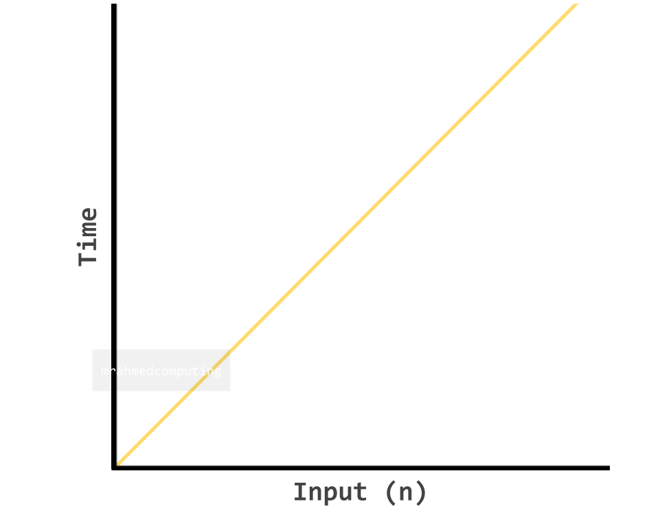 - O(n): This means that the algorithm runs in linear time. The time it takes to execute the algorithm grows linearly with the input size.